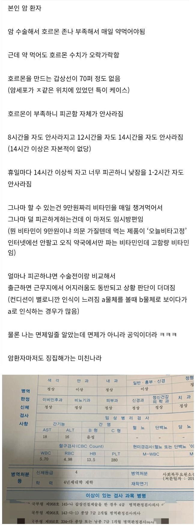 이제 하다하다 암 환자도 군대로 끌고 감