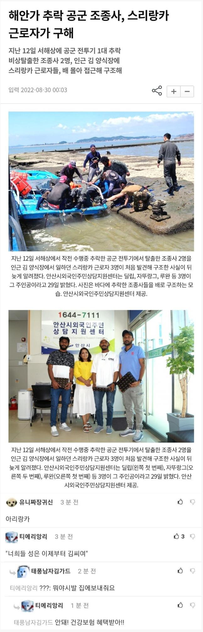 추락한 공군 조종사 구한 스리랑카 근로자