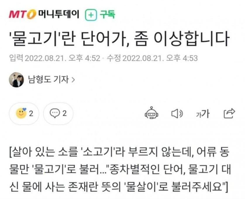 '물고기'란 단어가 좀 이상합니다