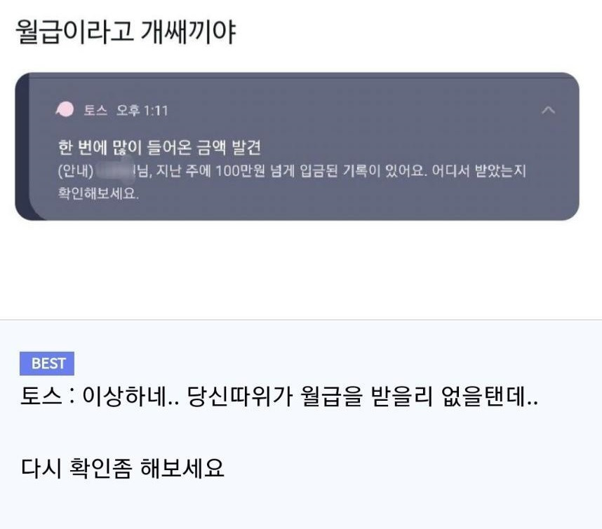 큰 돈이 들어왔네요.. 당신 돈 맞나요..?