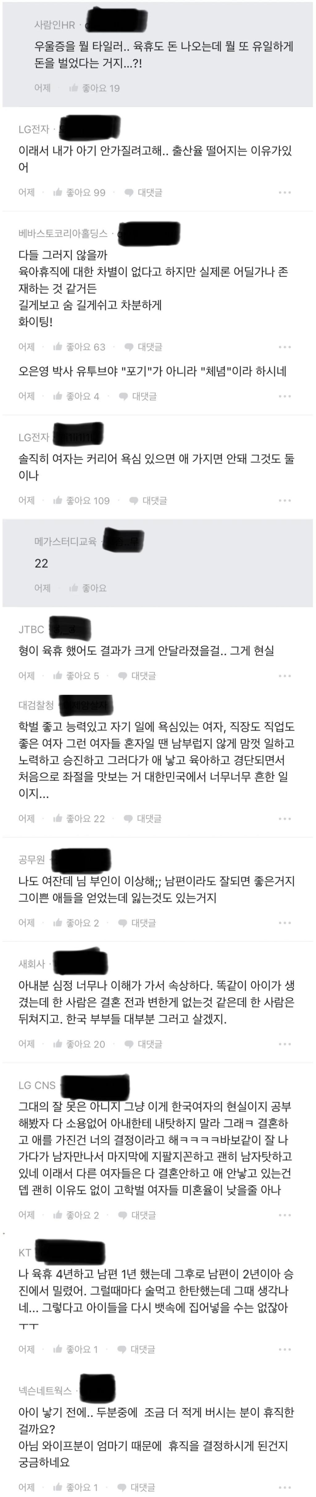육아휴직을 포기하고 커리어를 선택하든지 반대로 아이를 선택하고 커리어를 포기하든지 하는건 어디까지나 본인의 선택임.