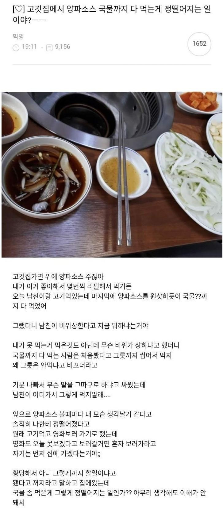 고기 먹으러 갔다 헤어질 위기의 여자