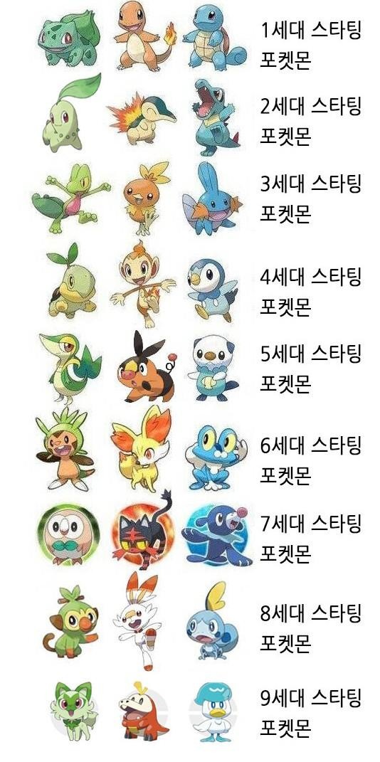 포켓몬스터 세대별 스타팅 포켓몬 디자인