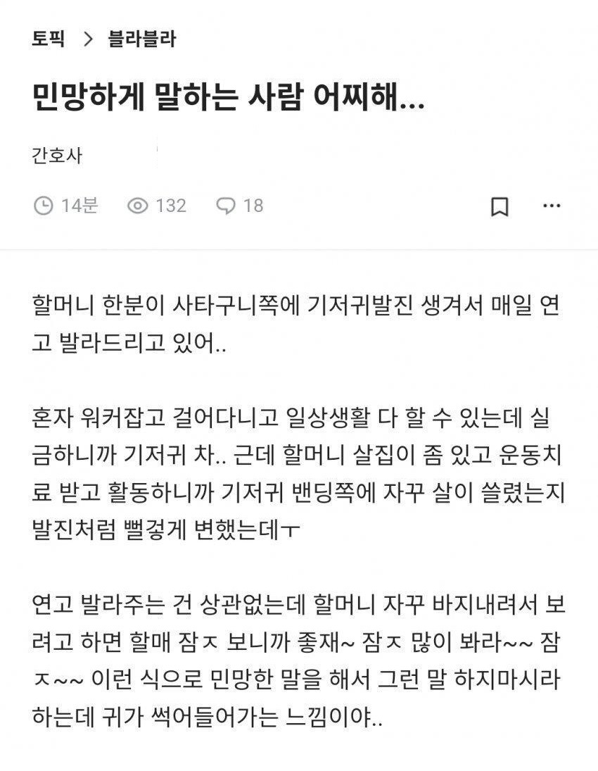 할머니에게 고통 받고 있는 간호사
