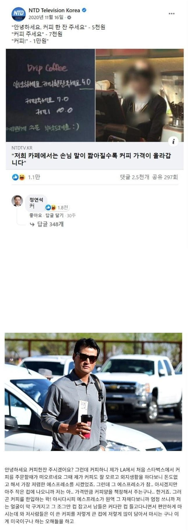 손님 말이 짧으면 가격이 비싸지는 커피 집