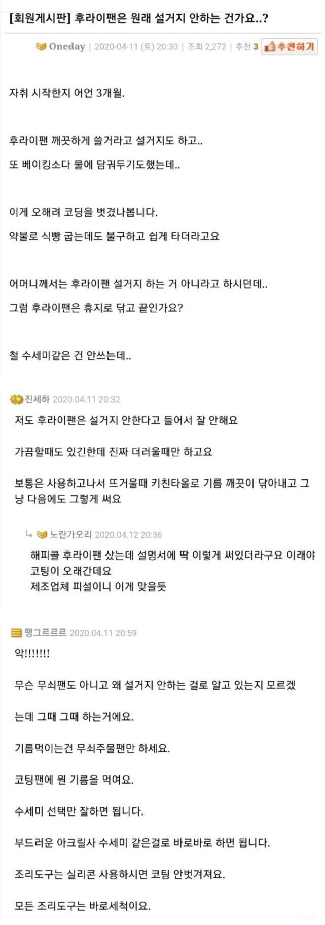 후라이팬 설거지 논란