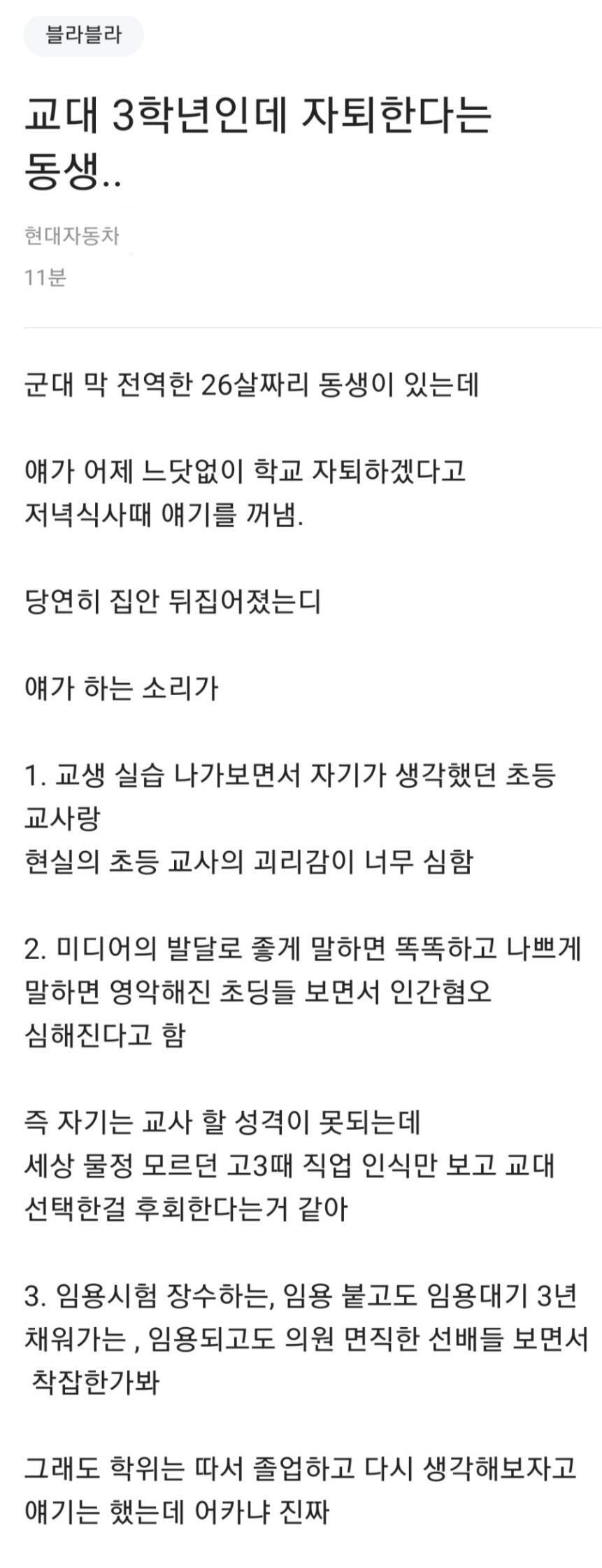 교대 3학년인데 자퇴하겠다는 남동생