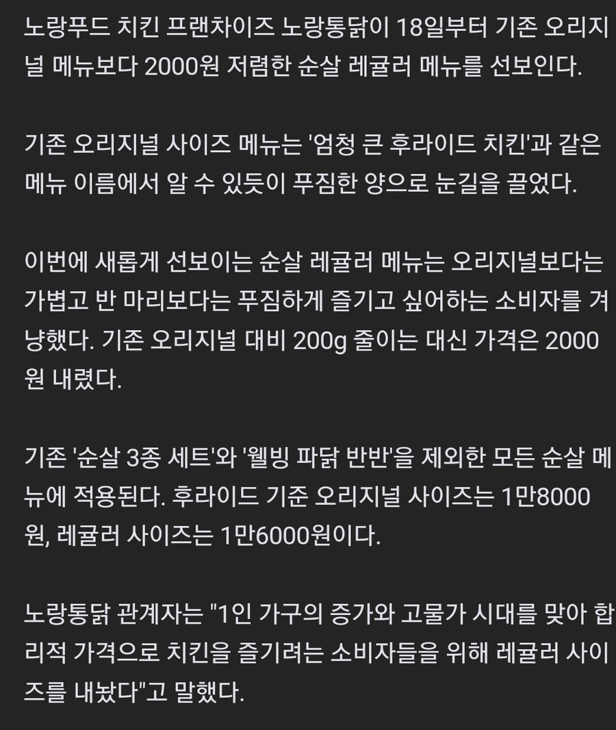 노랑통닭이 치킨 값을 2천원 내린답니다!