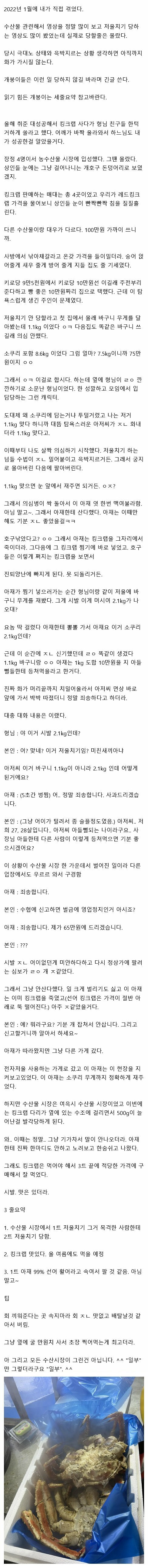 킹크랩 저울치기 참교육 한 썰
