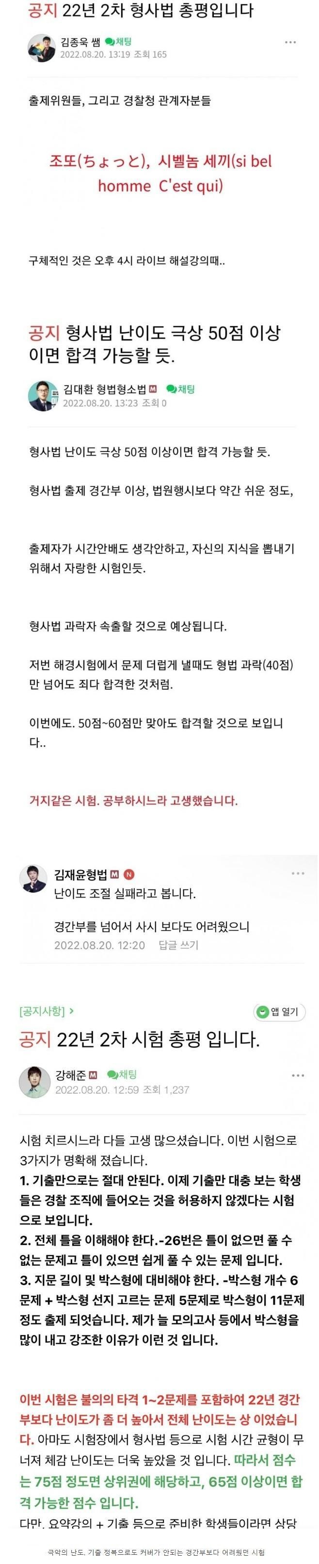최근 순경 필기시험 난이도 강사들 총평