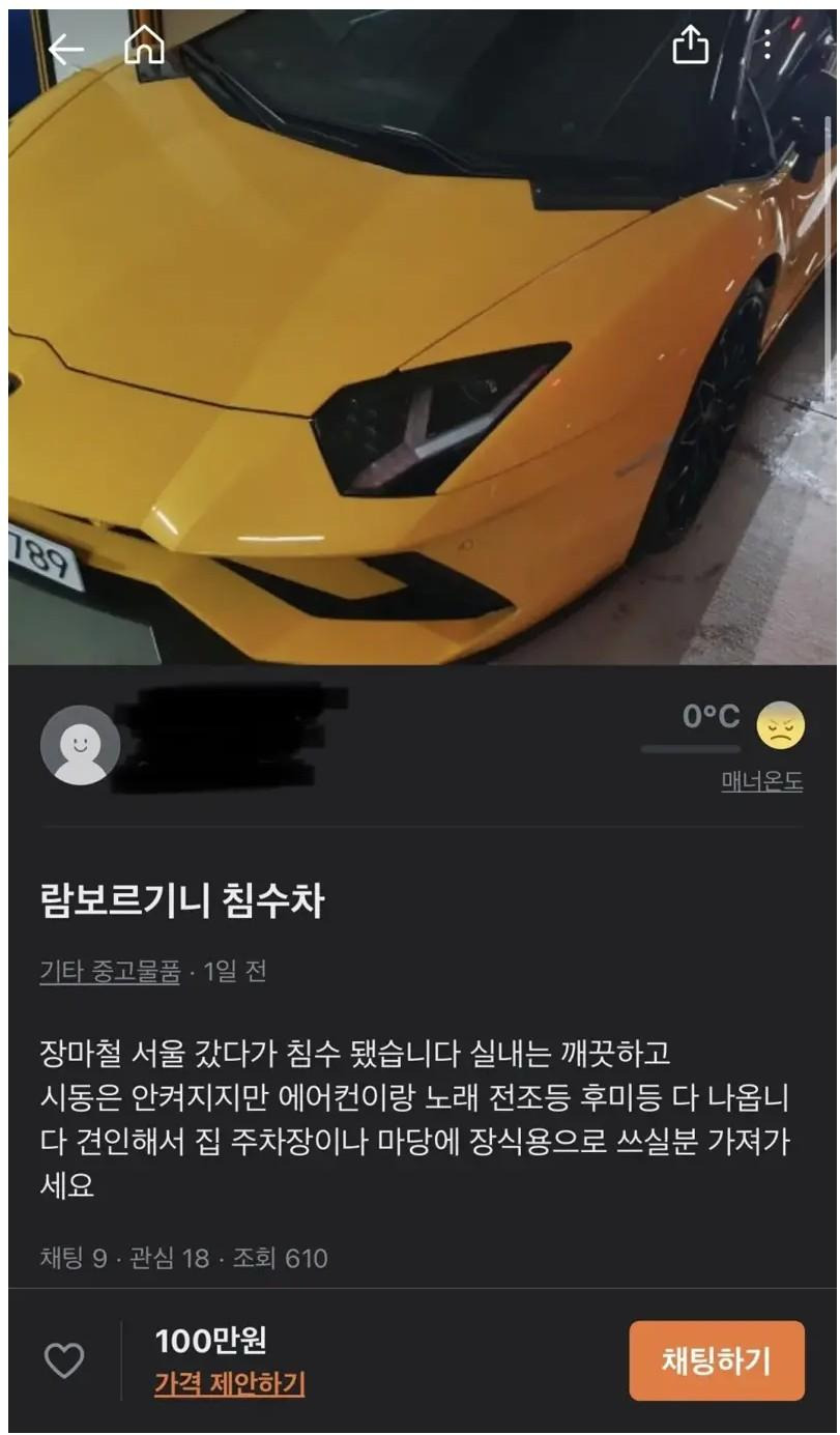 당근마켓에 올라온 관상용 람보르기니