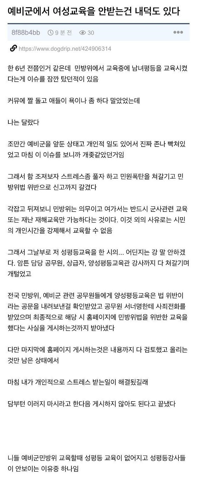예비군 교육 뒤엎어버린 사람