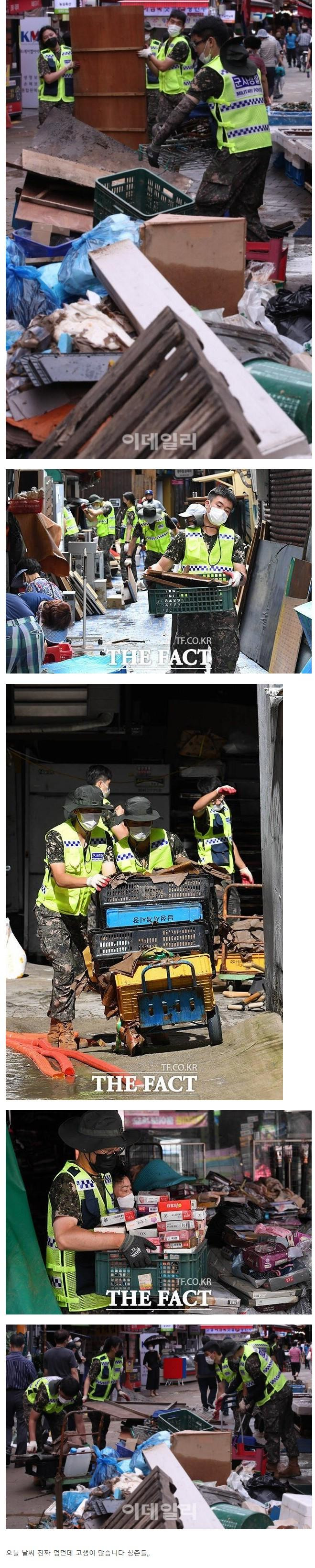 침수 피해 대민 지원 나선 군인 장병들