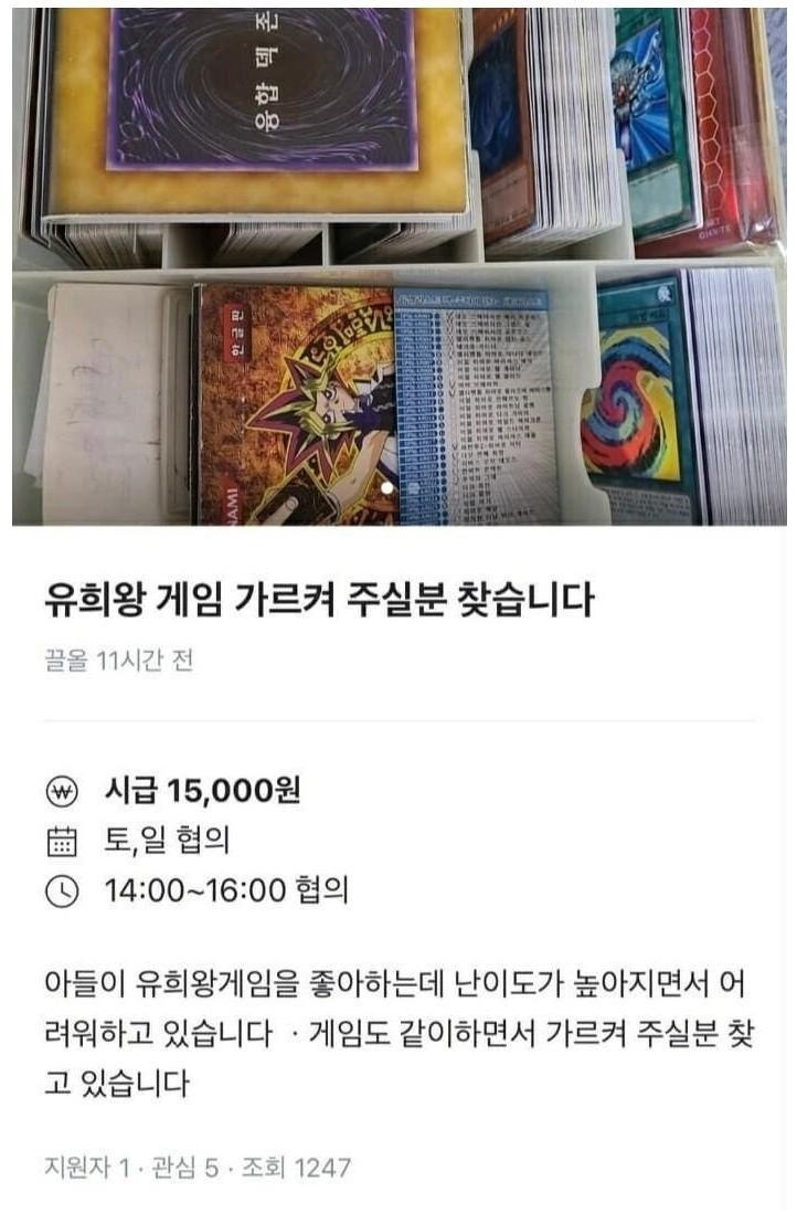 당근마켓에서 유희왕 과외 모집하는 아버지