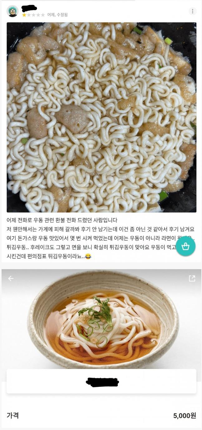 배민 별점 1개...5000원 우동...