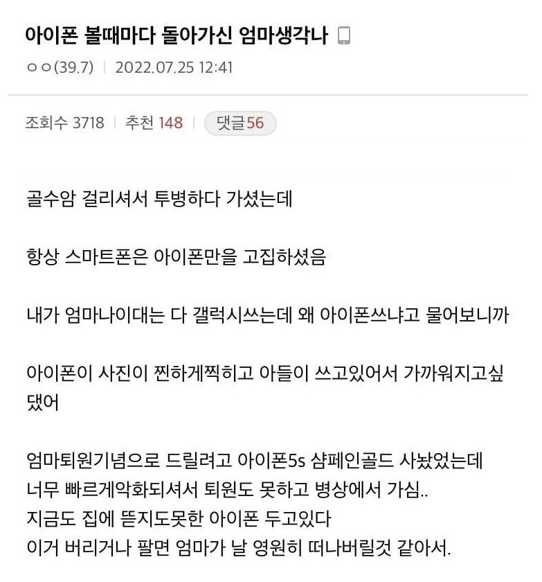 아이폰 볼 때 마다 돌아가신 엄마 생각나