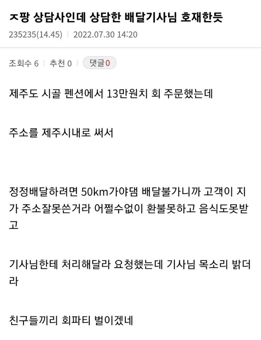 뜻밖에 횡재한 쿠팡이츠 배달 기사