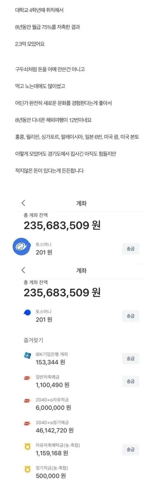 8년 동안 월급 75% 저축한 결과