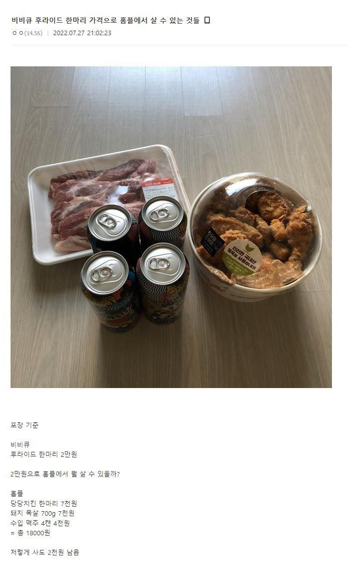 치킨 한 마리 가격에 홈플에서 살 수 있는 것