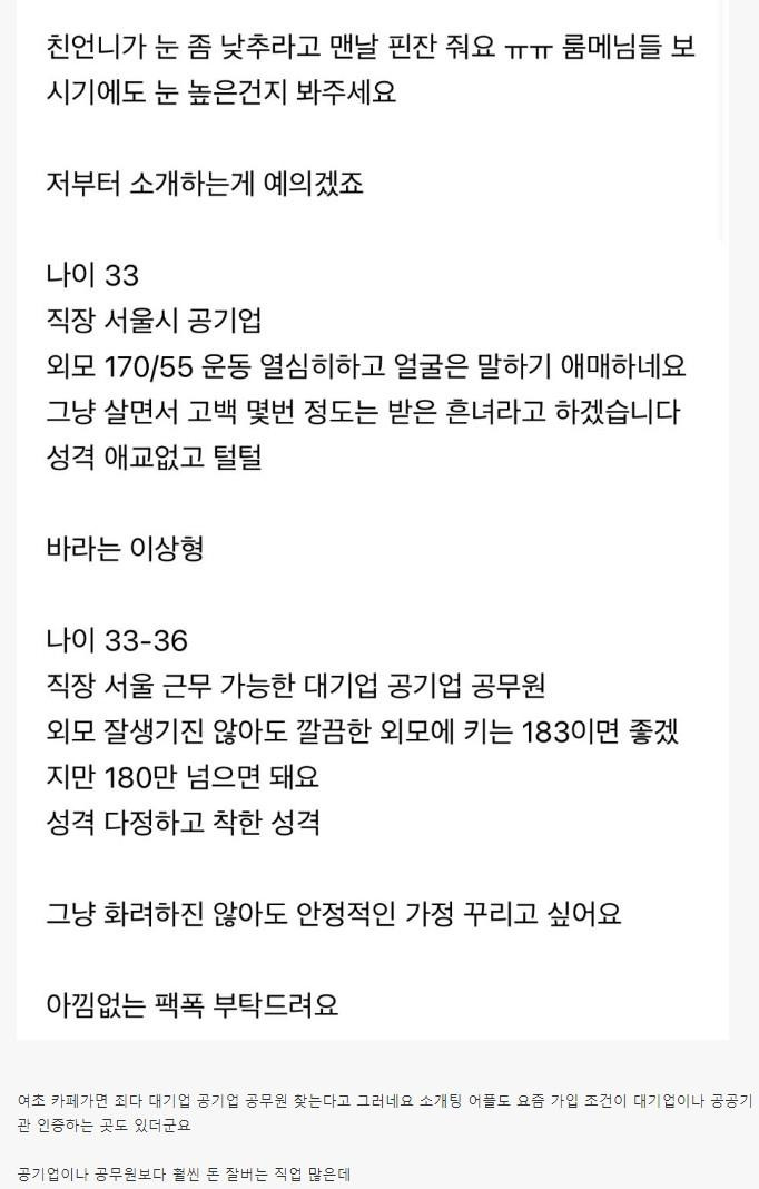 친언니가 눈 좀 낮추라고 맨날 핀잔 줘요