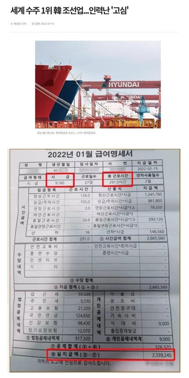대우조선 16년 차의 급여 명세서