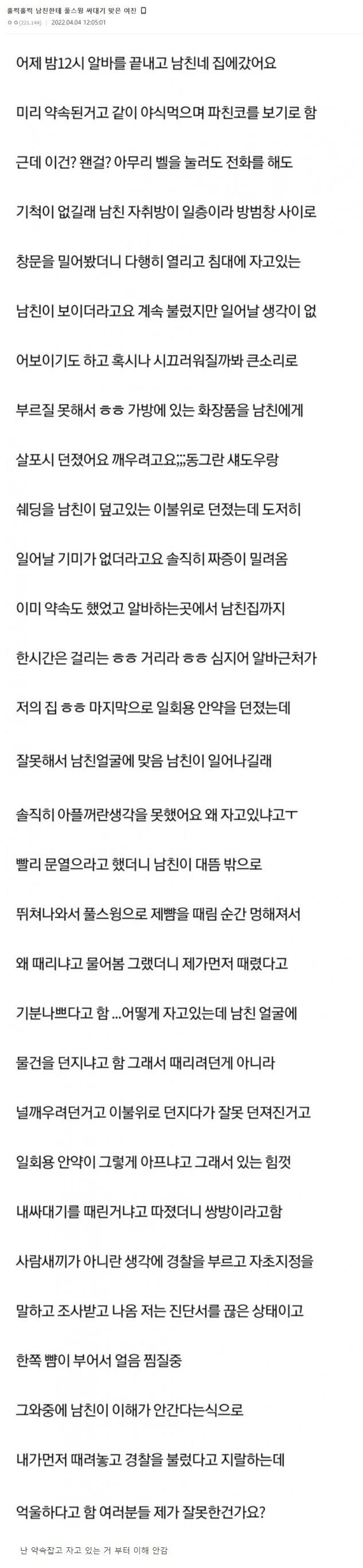 남친한테 풀스윙 싸대기 맞은 여자
