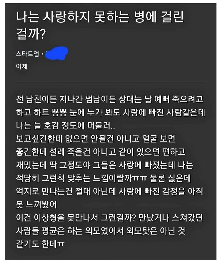 사랑한다는 감정을 못 느낀 사람의 고민