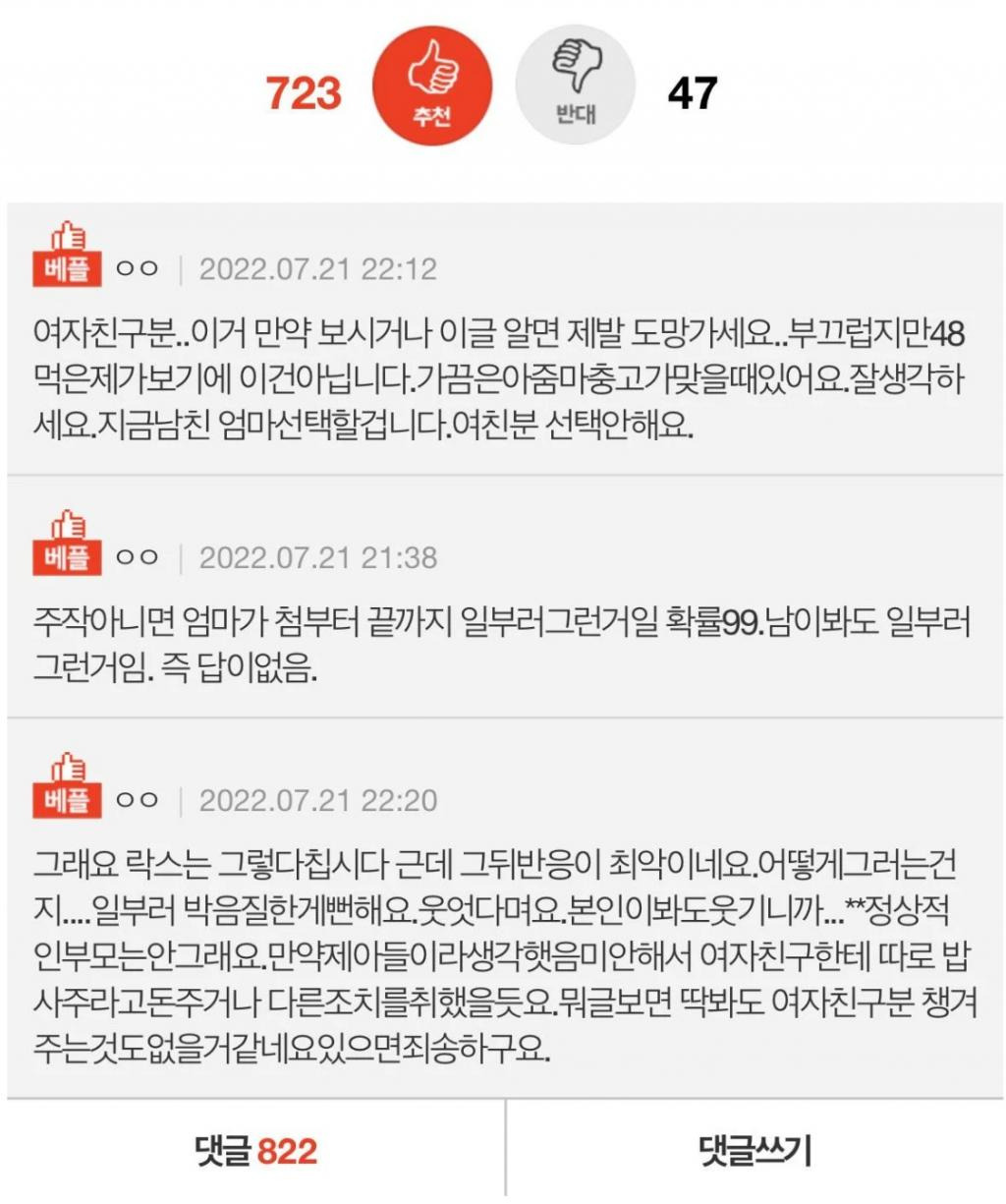 엄마가 여친이 준 옷 망가뜨림