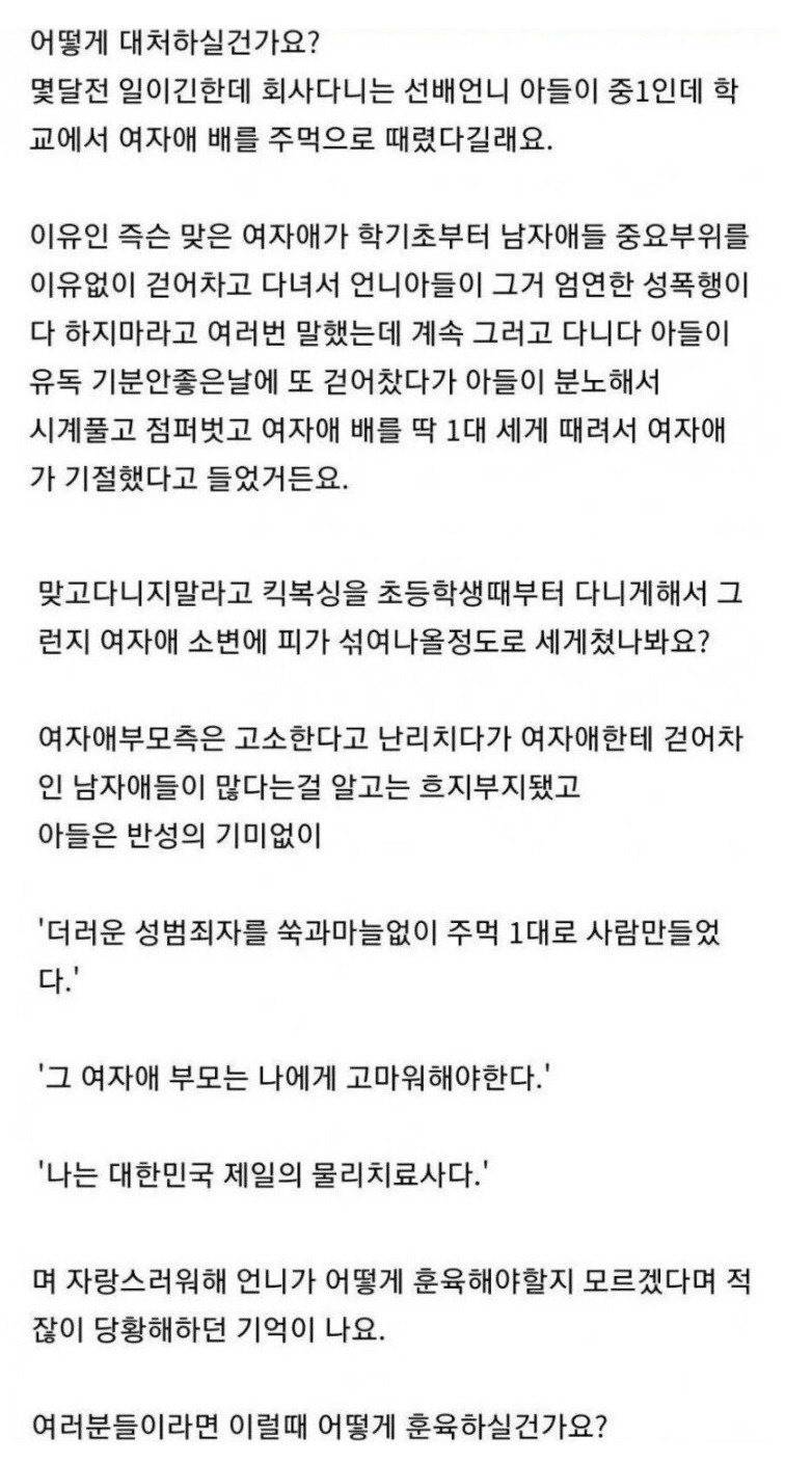 남학생 낭심 차고 다닌 중1 여학생의 최후