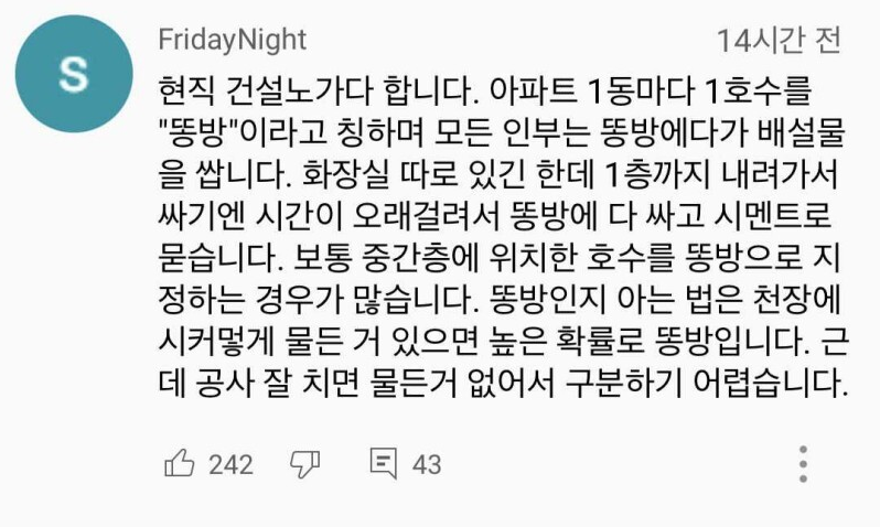 신축 아파트 냄새나서 까보니까 똥 나옴