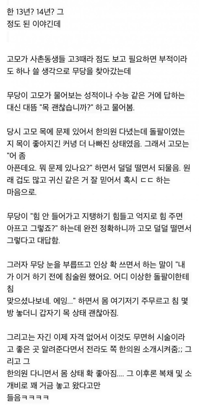 고모의 목이 아픈걸 정확히 맞춘 무당
