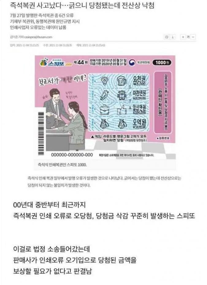 즉석복권 1등 당첨되도 믿을 수 없는 이유