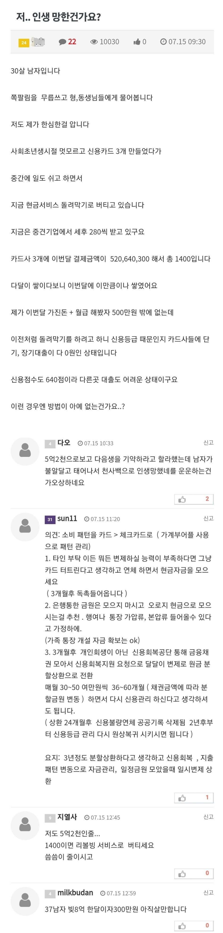 30살에 빚이 5억 2천 이면..