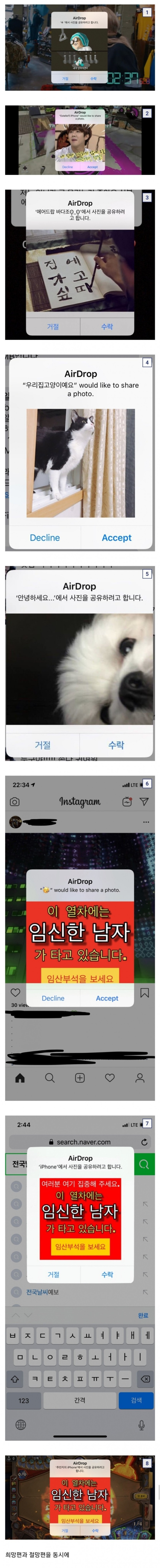 지하철에서 받은 에어 드랍 모음