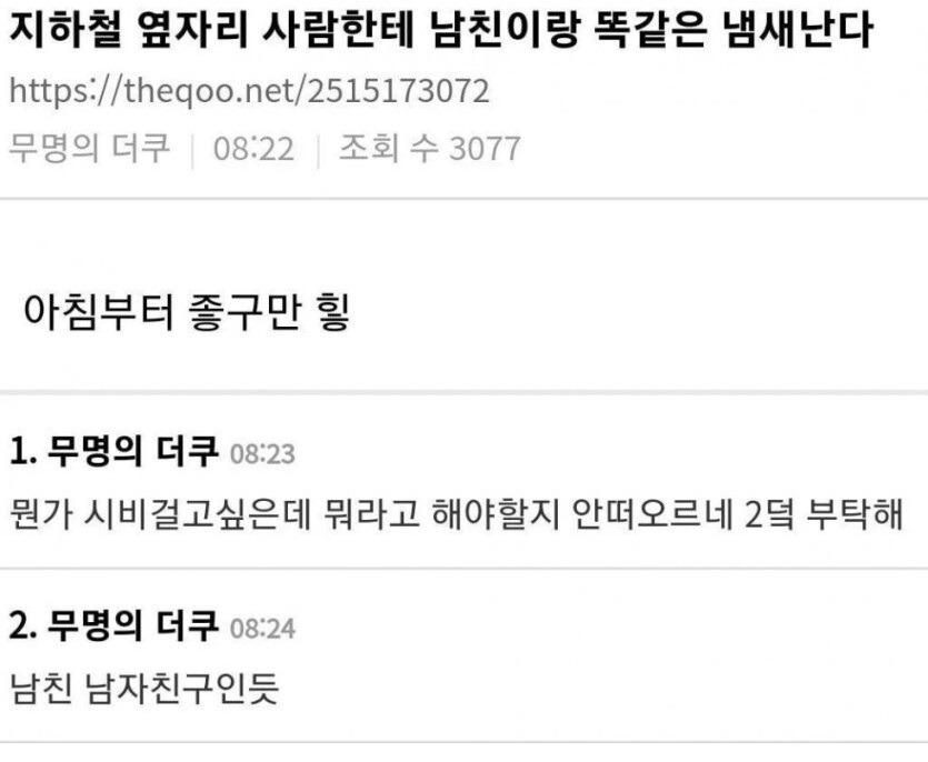 옆자리 사람한테 남친 향이 풍겨