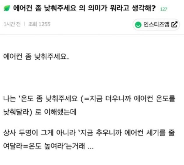 에어컨 좀 낮춰주세요 의미가 뭐라 생각해?