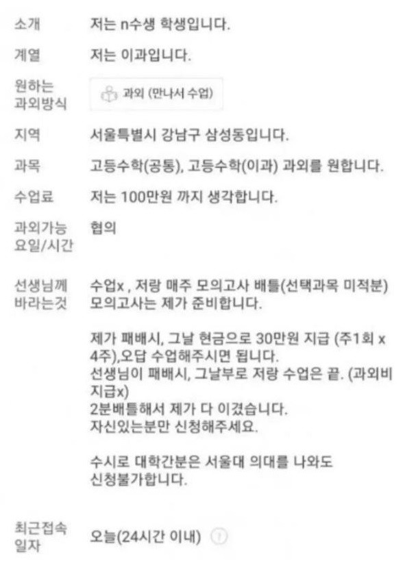 요즘 강남 N수생 과외 난이도