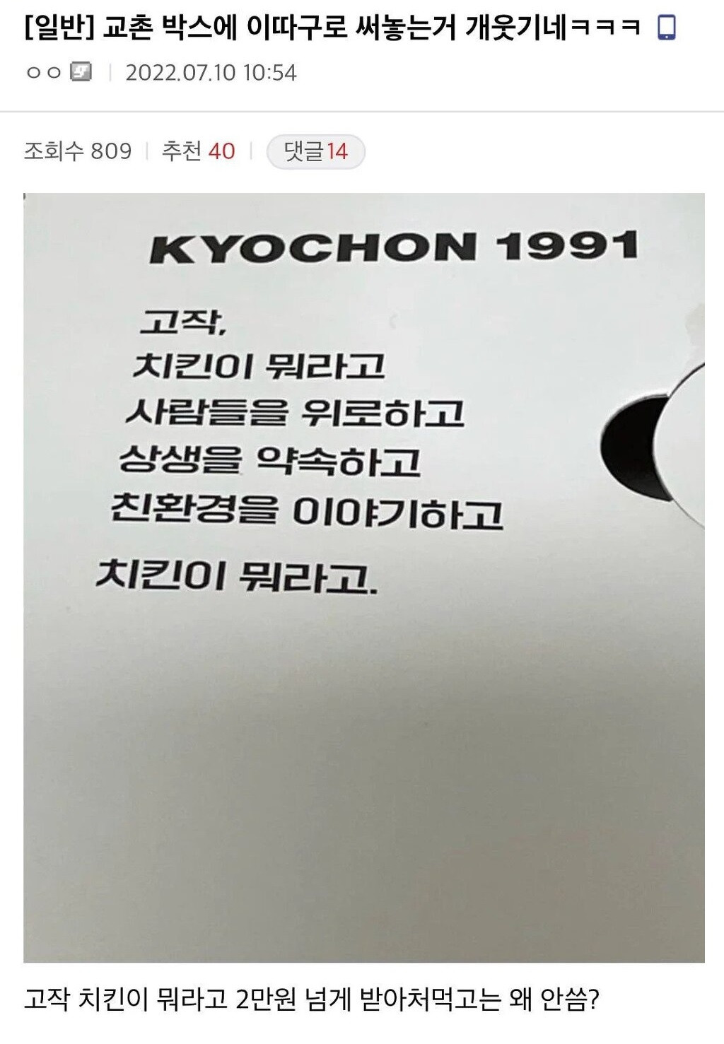 교촌 치킨 박스가 이해 안되는 디시인