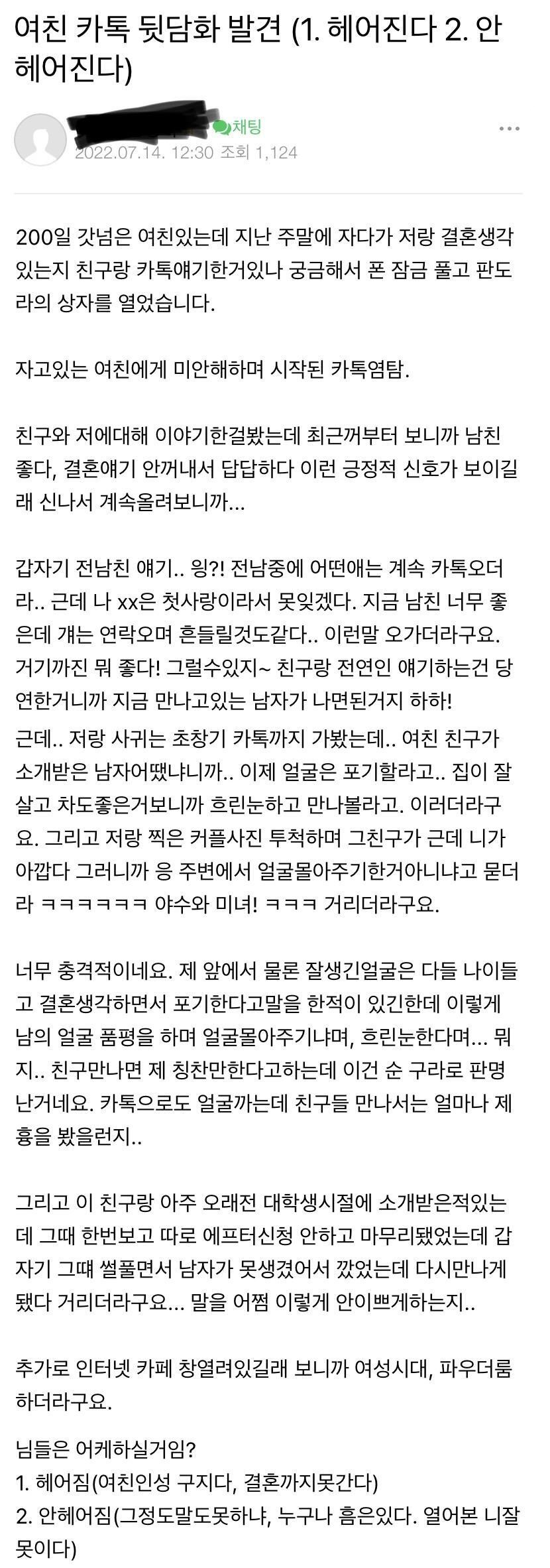 여친 카톡 뒷담화 발견한 남자