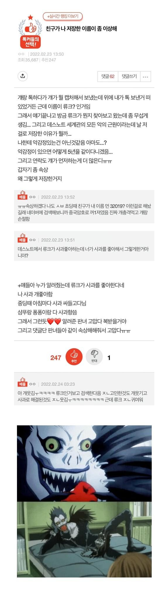친구가 나 저장한 이름이 좀 이상해