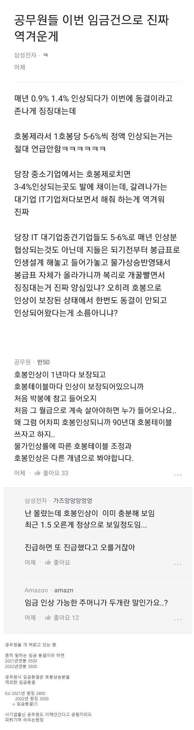 블라인드에서 난리난 공무원 임금 동결