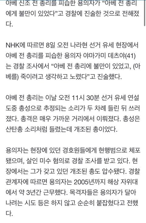 아베 피습 용의자 쏜 이유 떴다