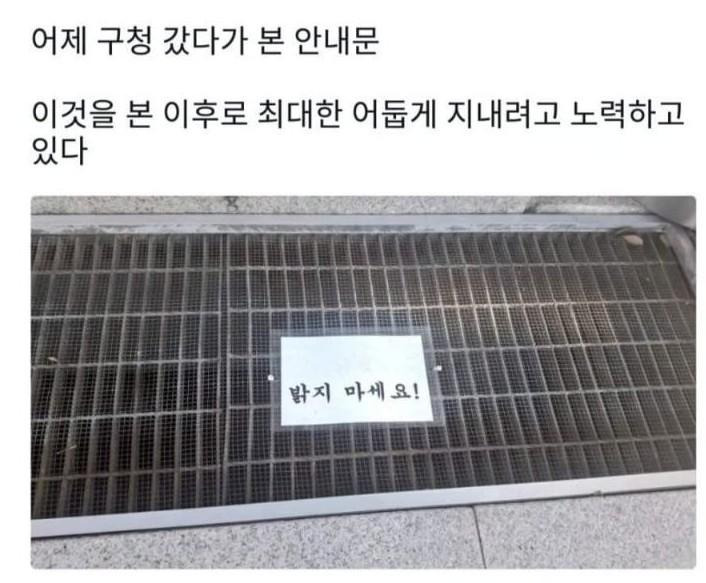 어둡게 지내라는 구청의 경고문