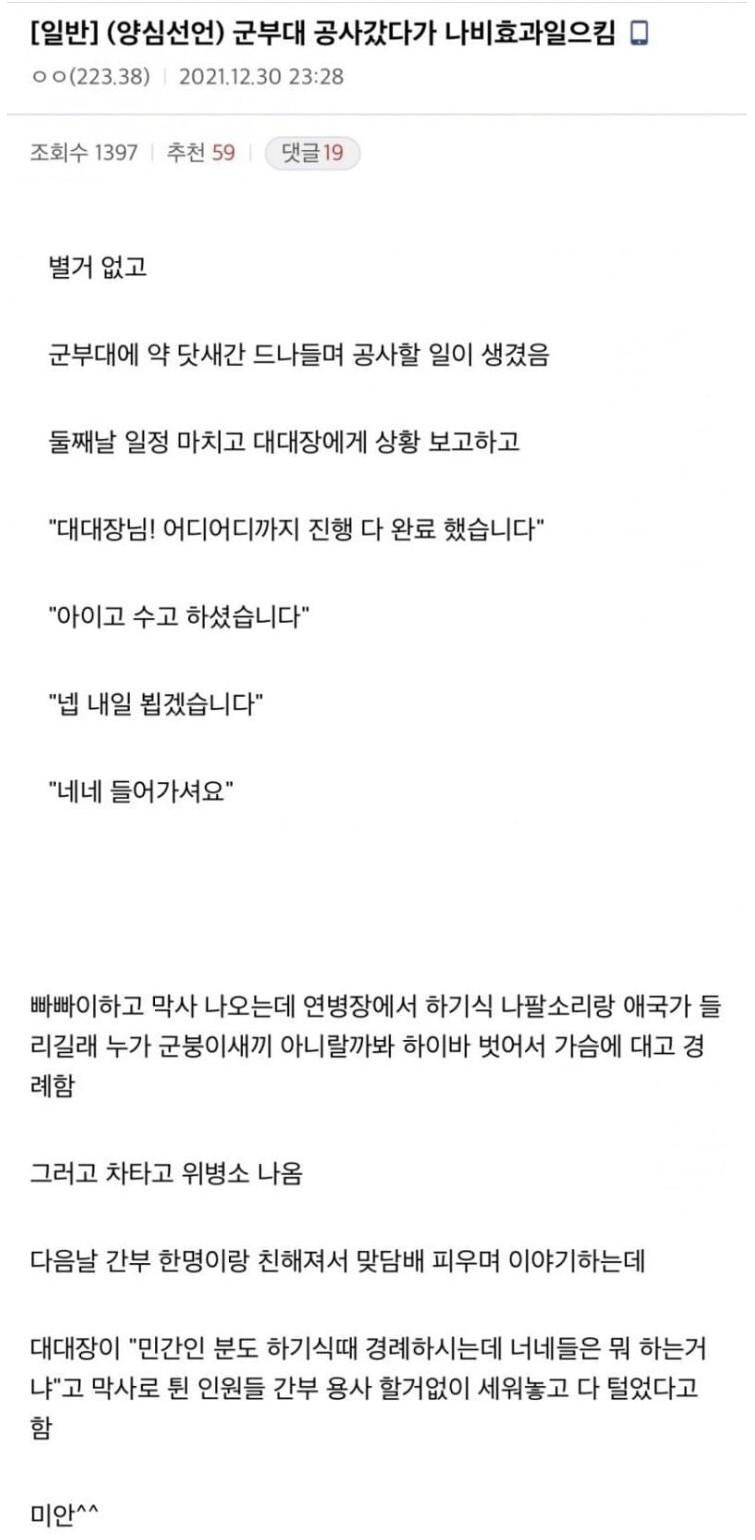 군부대 공사갔다가 나비효과 일으킨 군붕이
