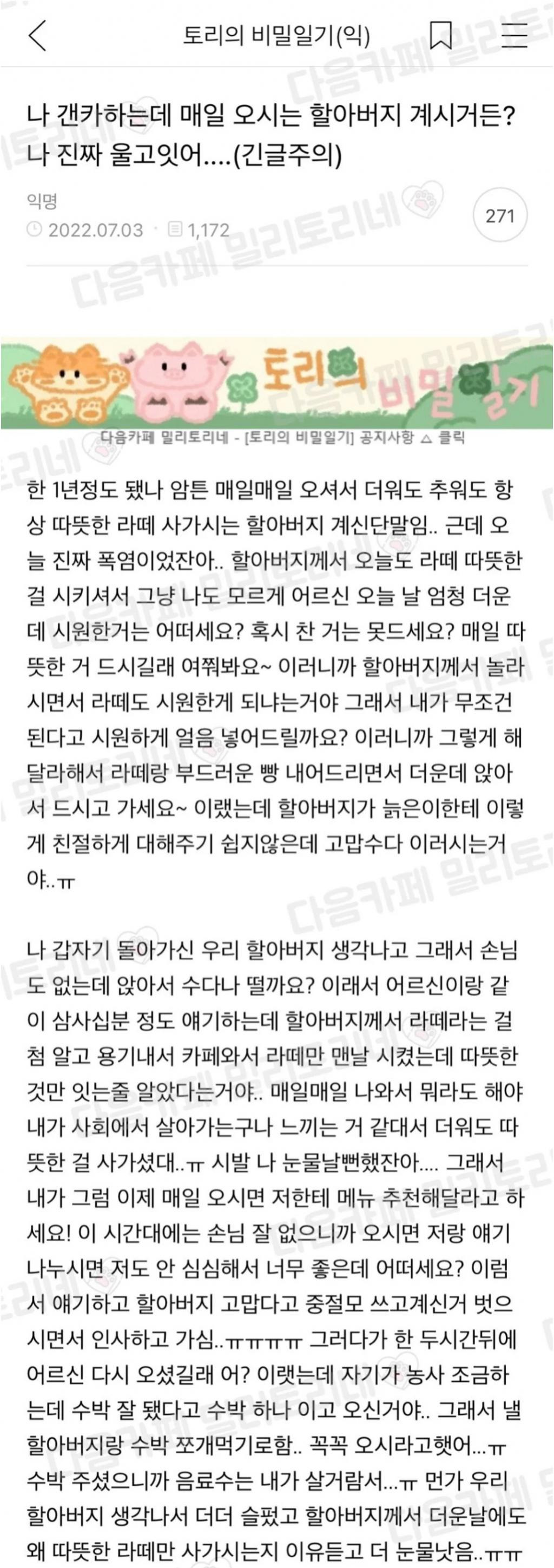 개인 카페 하는데 매일 오시는 할아버지