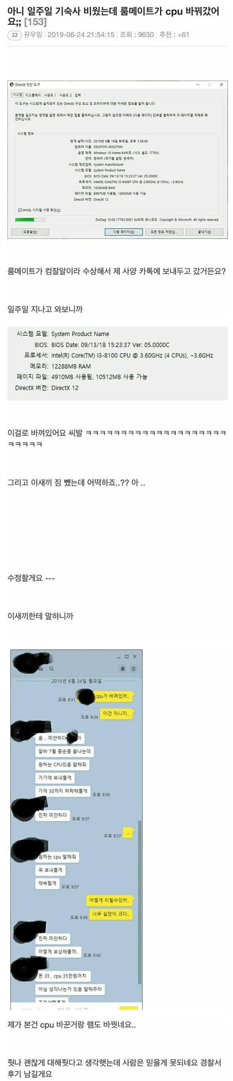 집 비운 동안 룸메가 한 짓