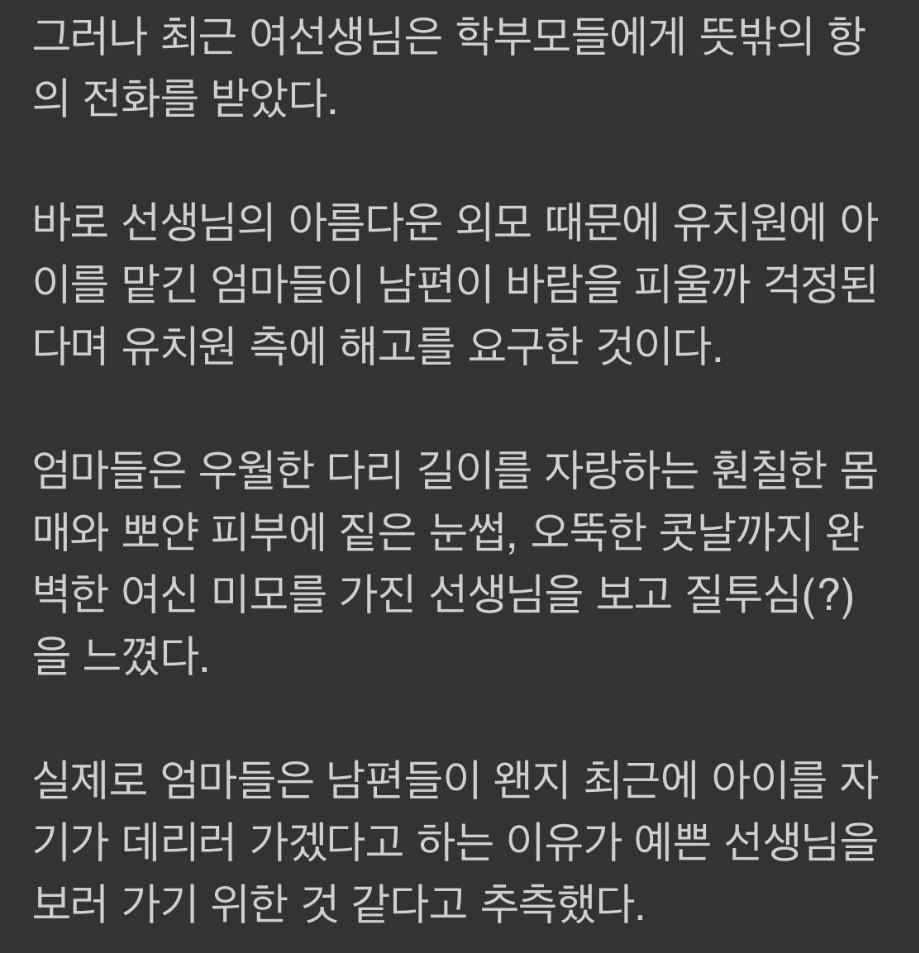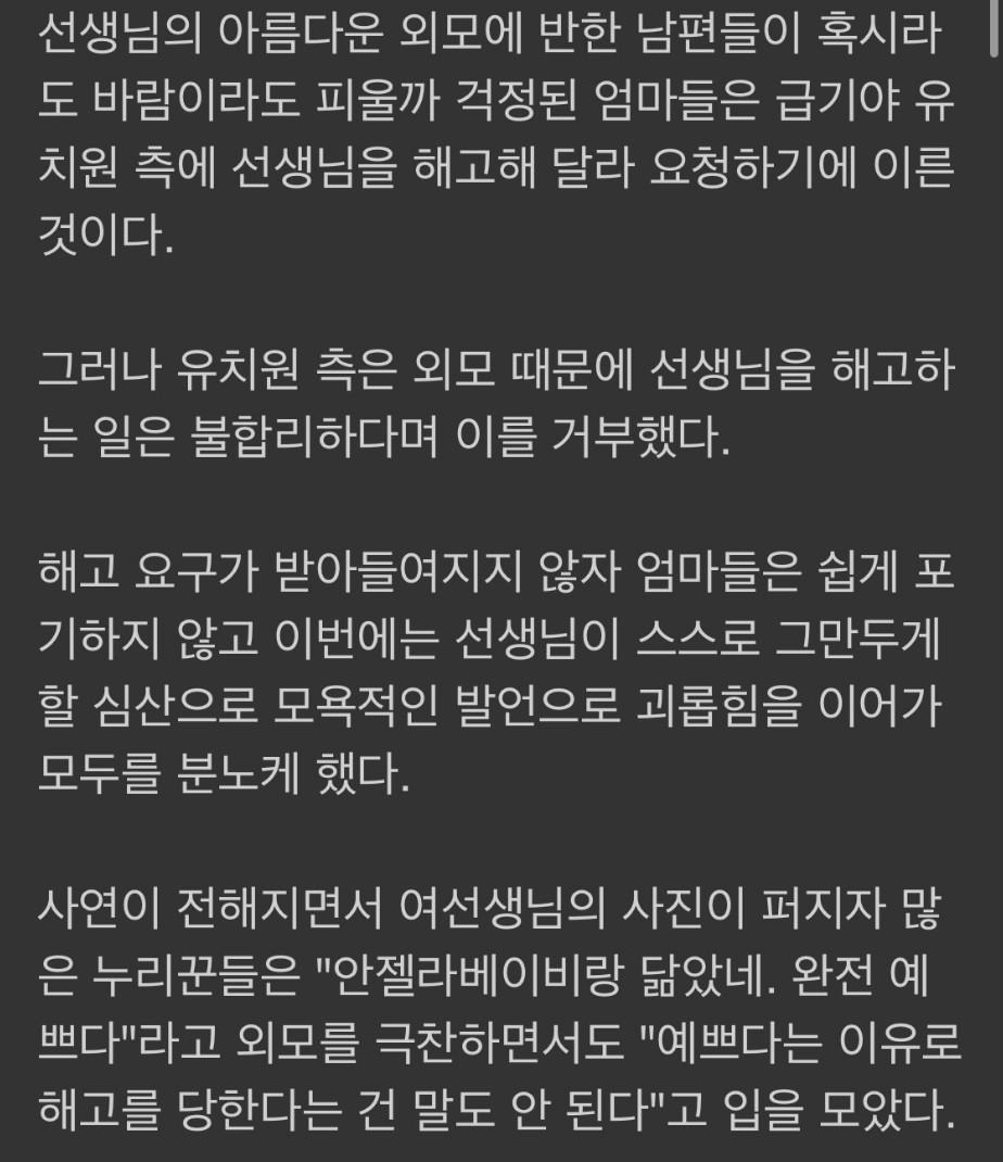 너무 예쁜 유치원 선생 '해고' 요구한 엄마들