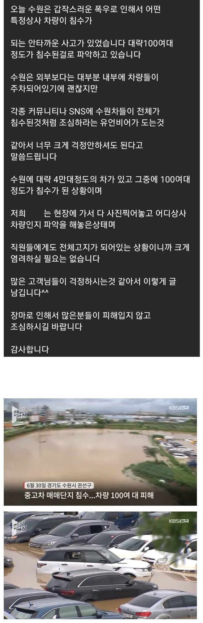 수원 중고차 침수차량 4만대 중 100여대
