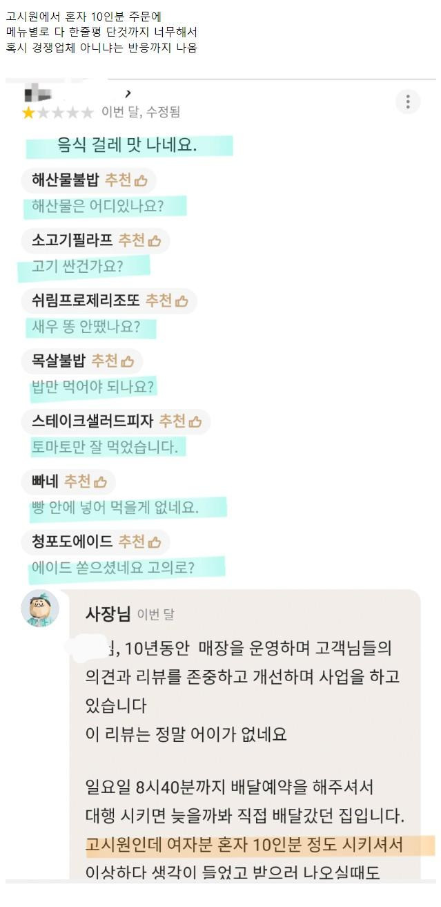 뭔가 너무한 거 같은 배민 리뷰