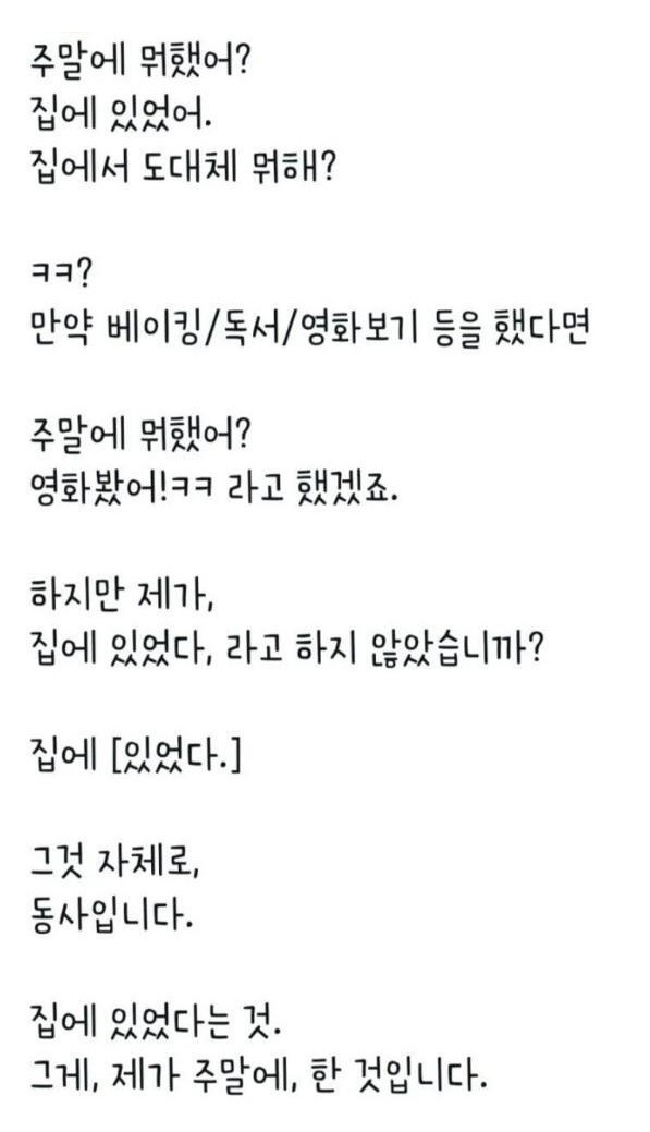 집돌이 집순이에게 주말에 뭐 했냐 물으면